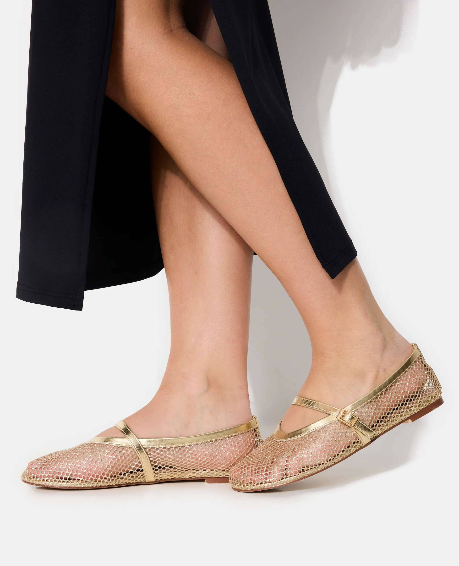 - Ballerines en mesh couleur or.