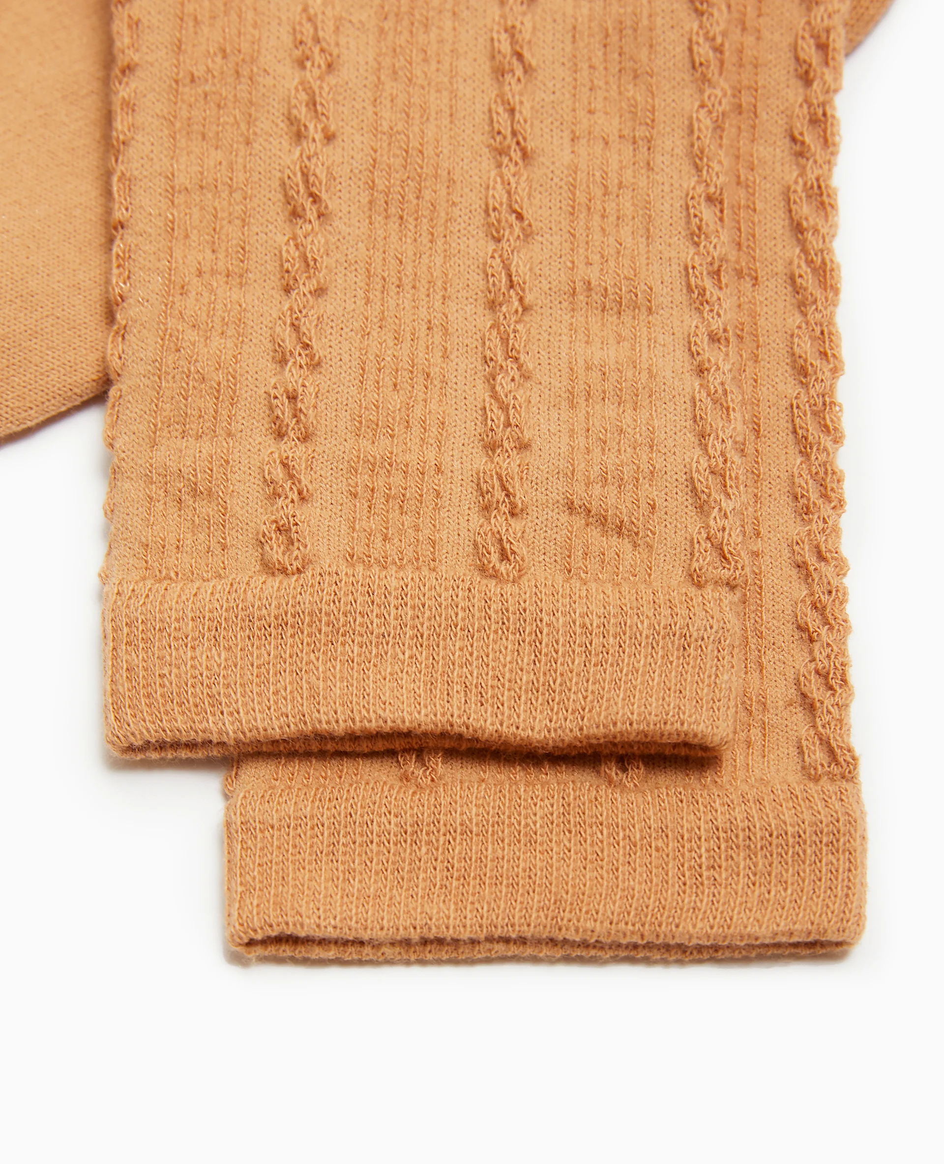 - Paire de chaussettes camel en maille fantaisie.