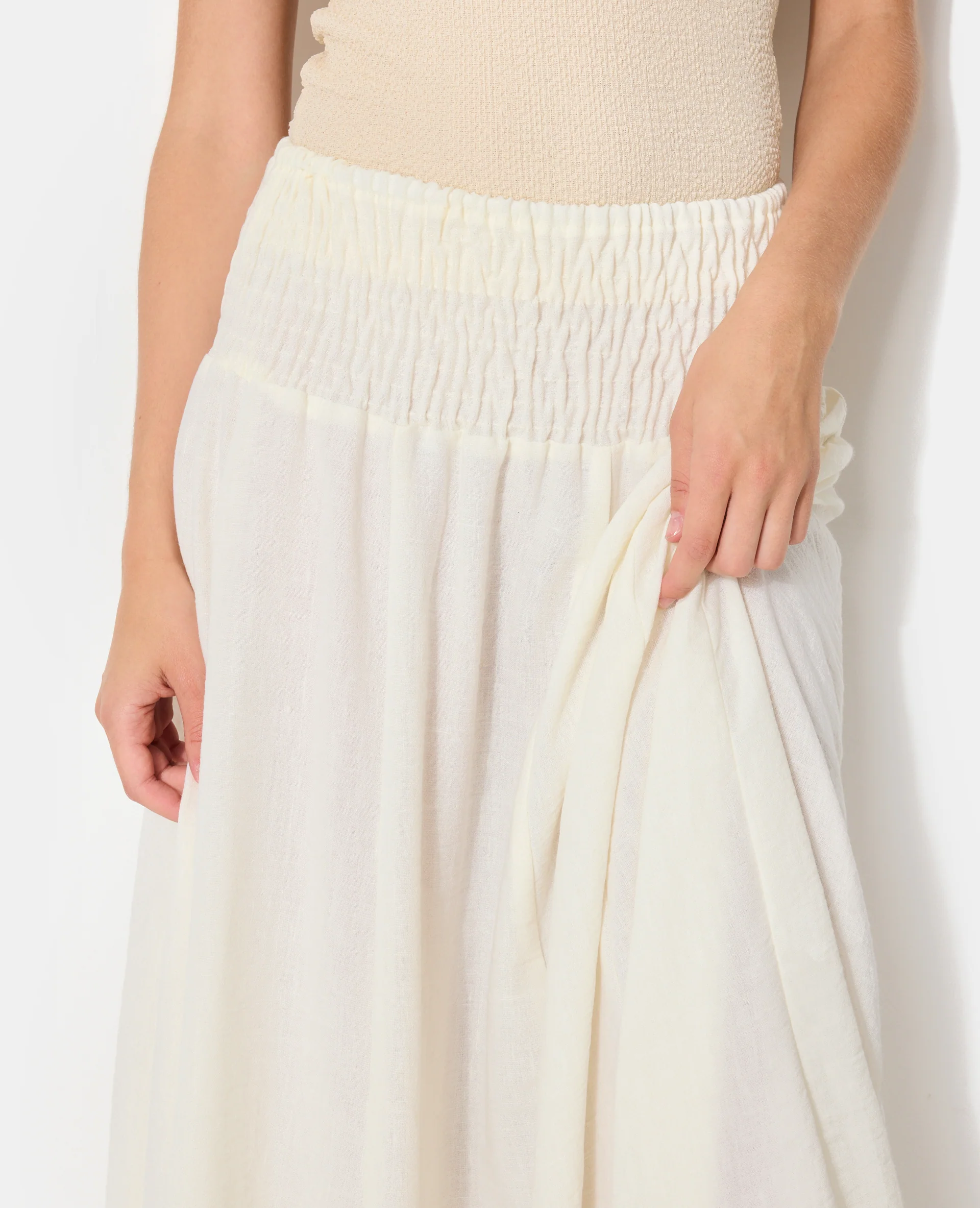 Jupe longue et évasée avec ceinture smock