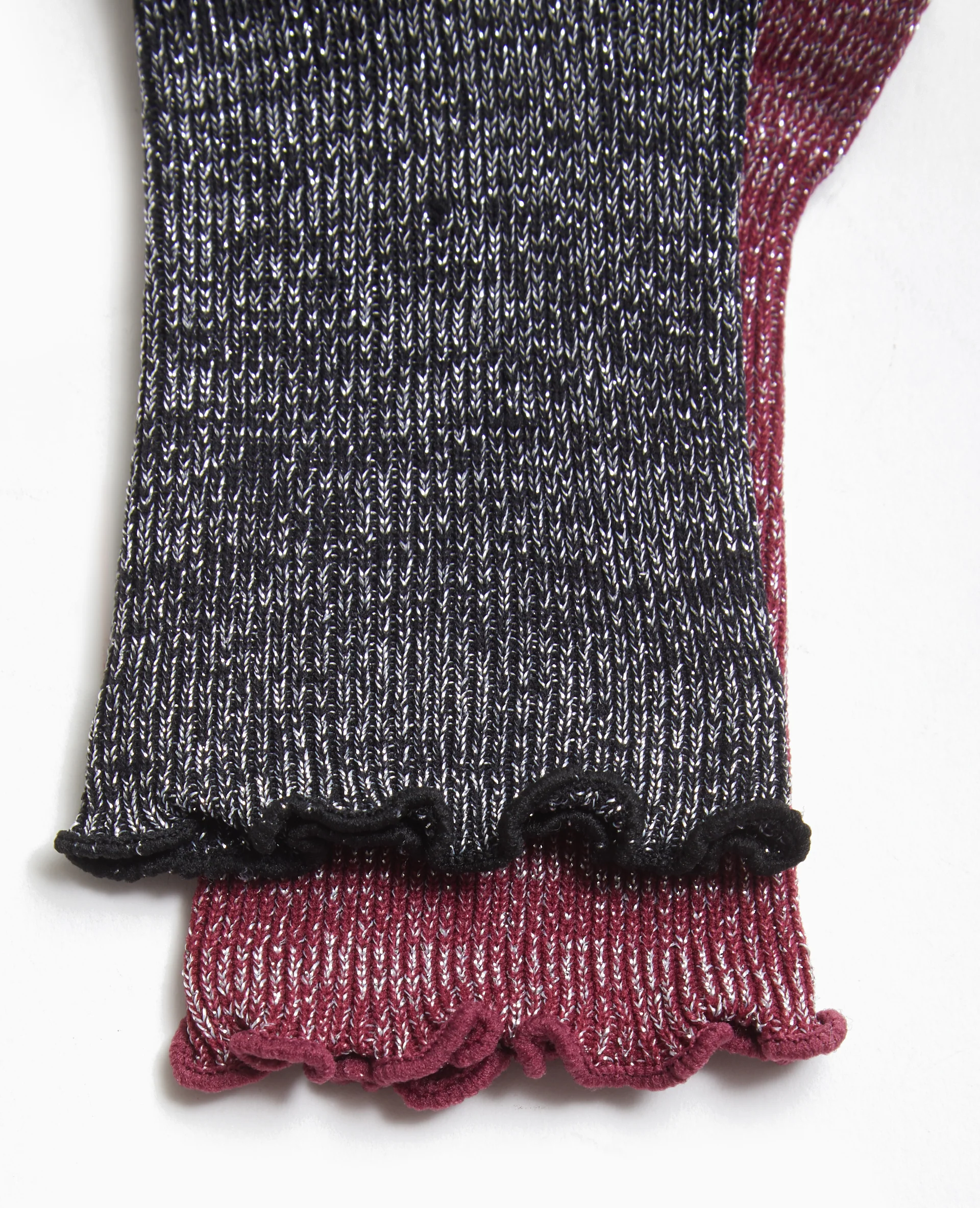- Lot de 2 paires de chaussettes avec fils lurex : 1 noir + 1 bordeaux.